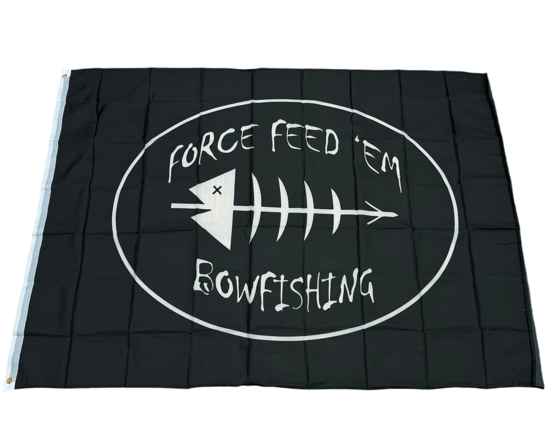 Show ‘em what you stand for with the 6 by 4 foot Force Feed’em Flag — big, bold, and built for the bowfishing lifestyle. Whether it's hanging in the shop, your garage, the wall behind your boat rig, or repping hard at tournaments, this flag makes a statement.