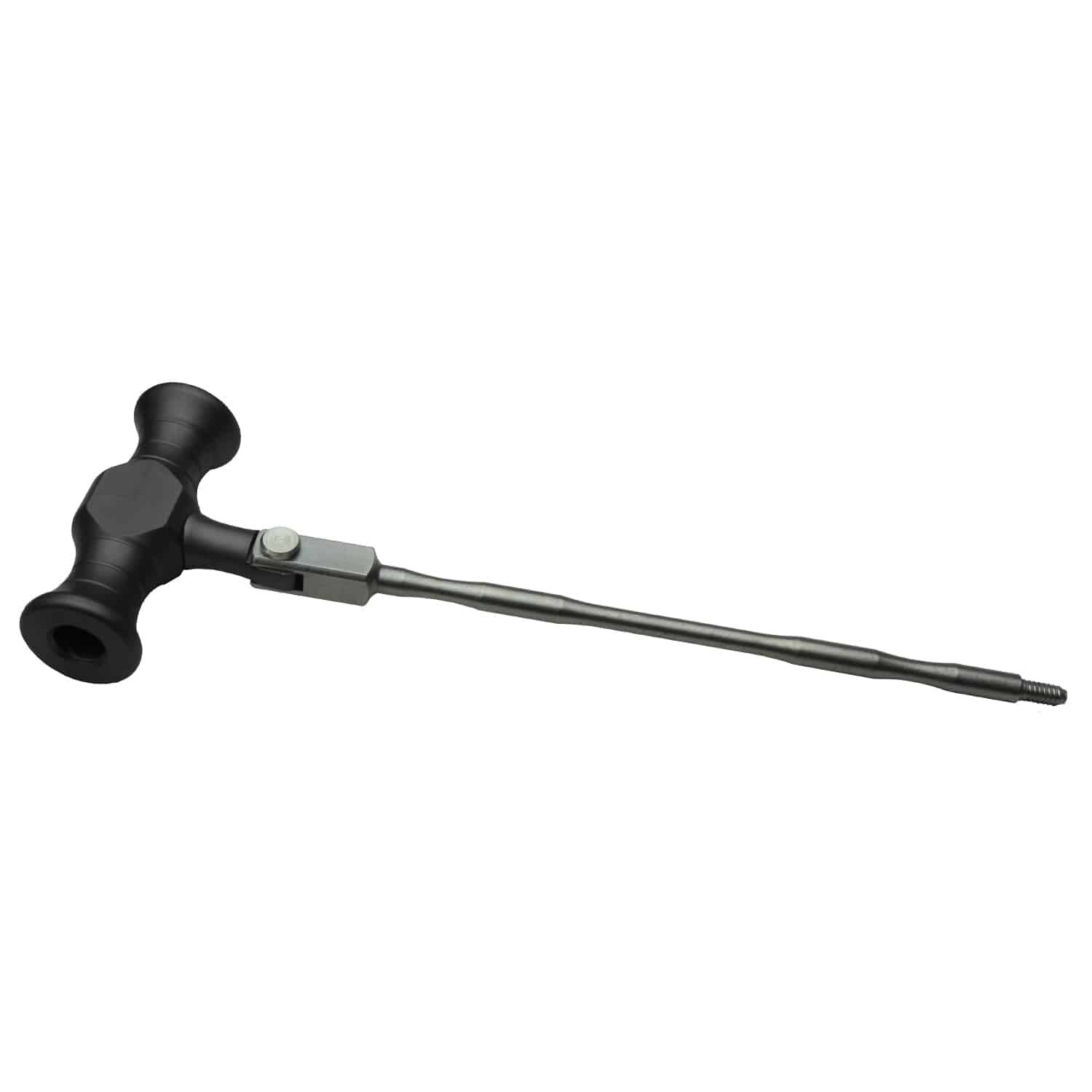 T-Bar assembly installs through the transmission and both line deflectors and is held on with the front cap nut. Pulling the T-Bar engages the pins and allows the line to be reeled in.