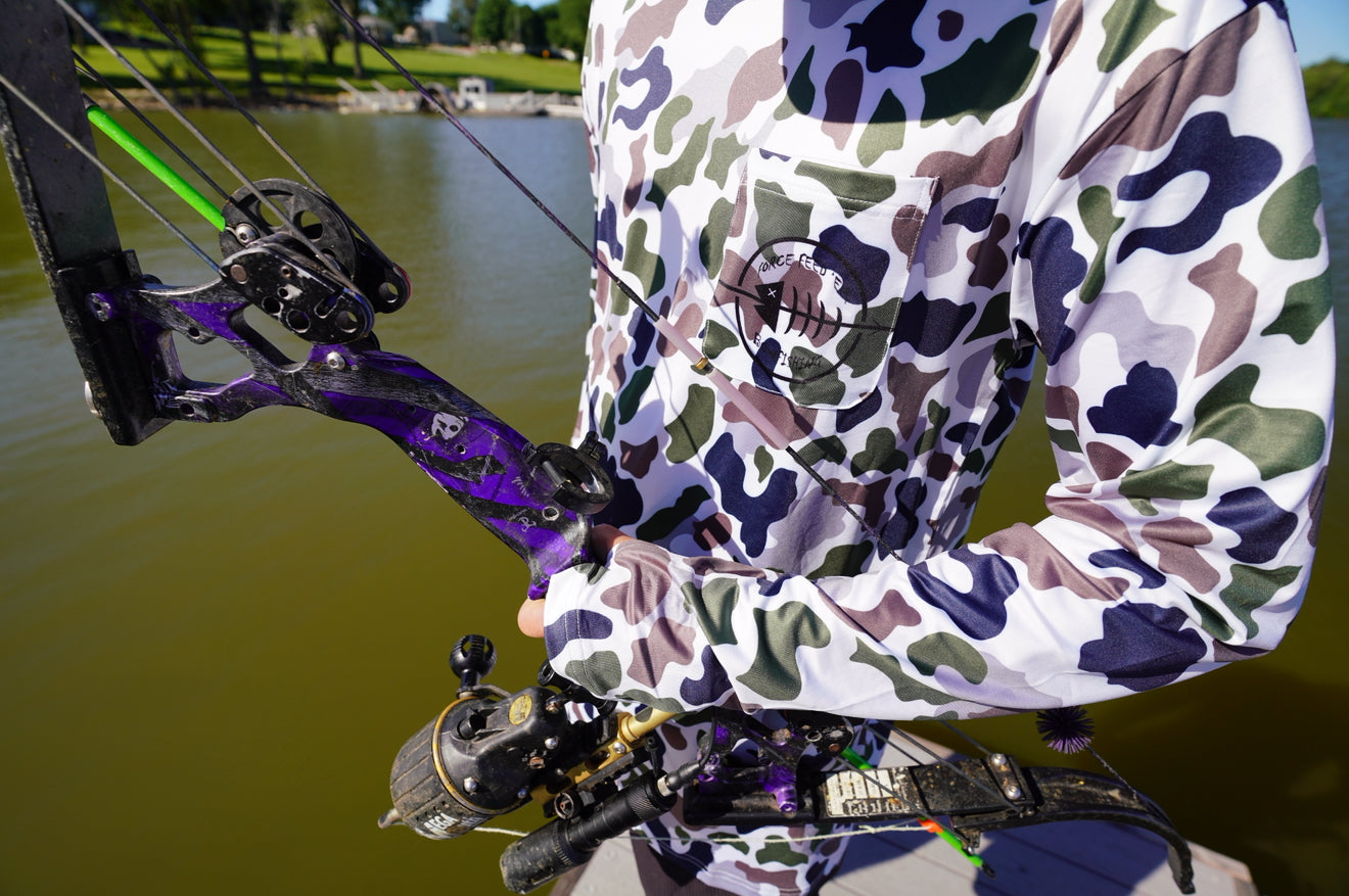 Upgrade your bowfishing game with the latest in bowfishing clothing from Force Feed’em. Our brand-new summer long sleeve hoodie is designed for serious shooters who live on the water. Whether you’re bowfishing during hot summer days or chasing fish on cool nights, this bowfishing shirt keeps you protected, comfortable, and ready to make every shot count.